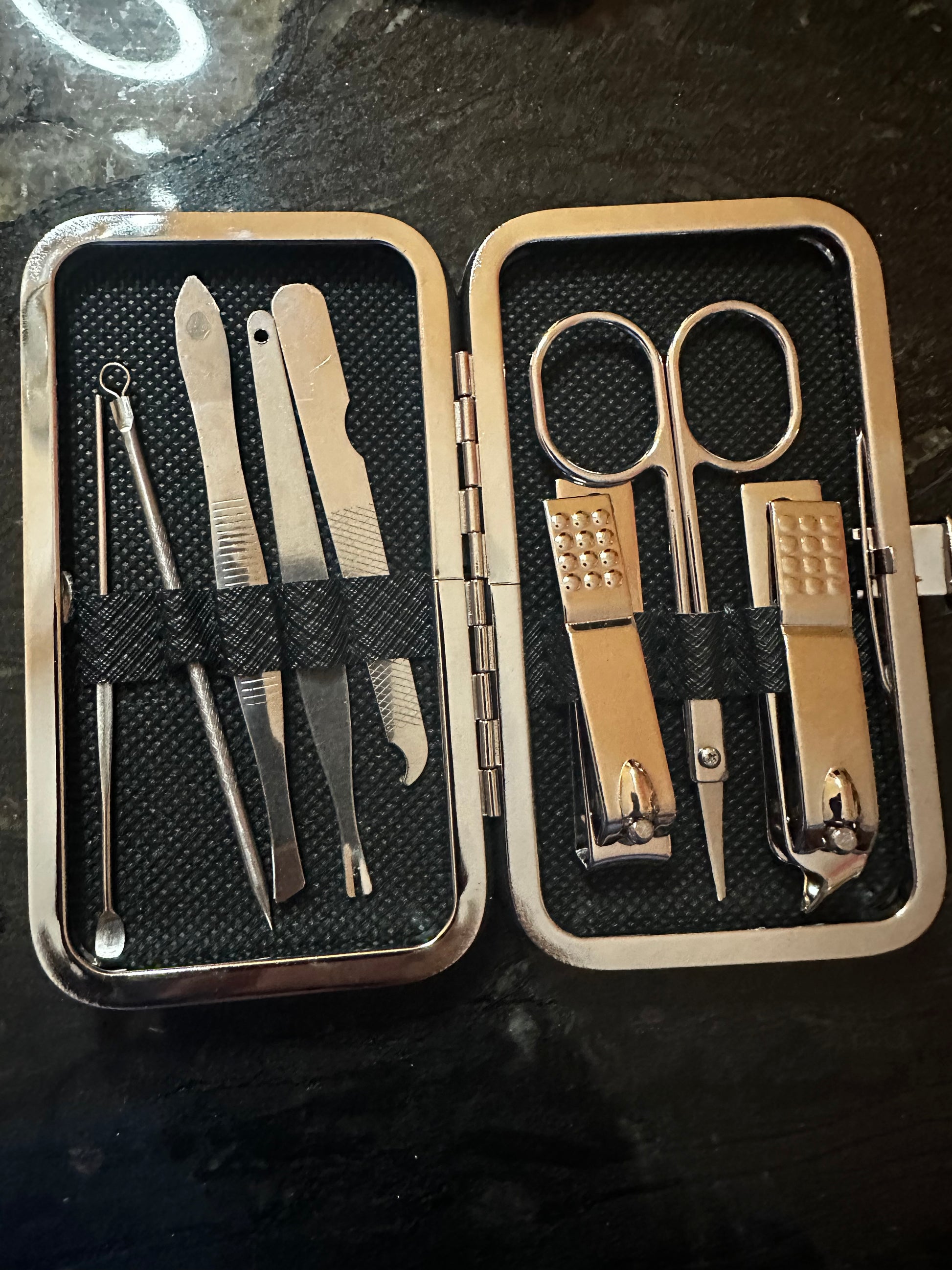 - Includes nail clippers, scissors, tweezers, cuticle trimmer, and more